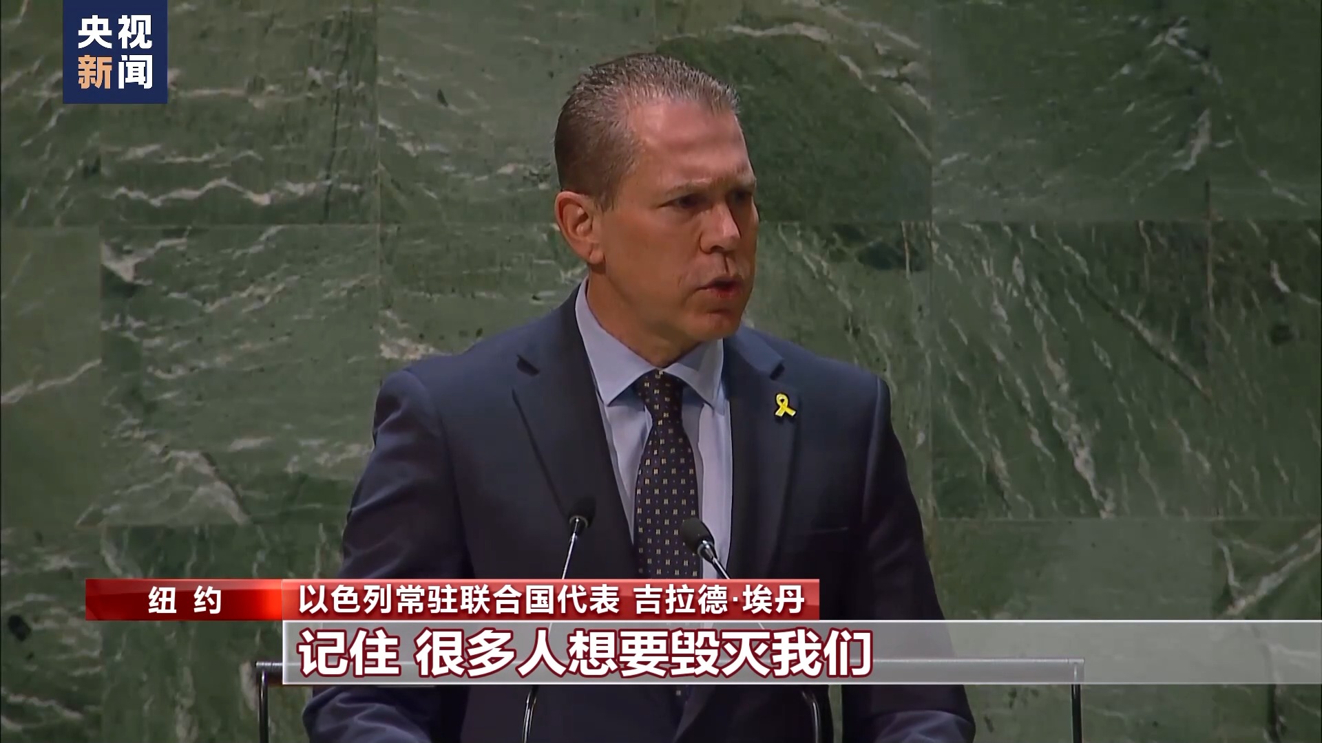 以色列常駐聯(lián)合國(guó)代表 吉拉德·埃丹:記住,很多人想要?dú)缥覀儭?/p>