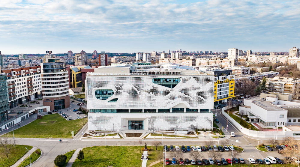 這是2023年12月29日在塞爾維亞首都貝爾格萊德航拍的貝爾格萊德中國(guó)文化中心大廈。