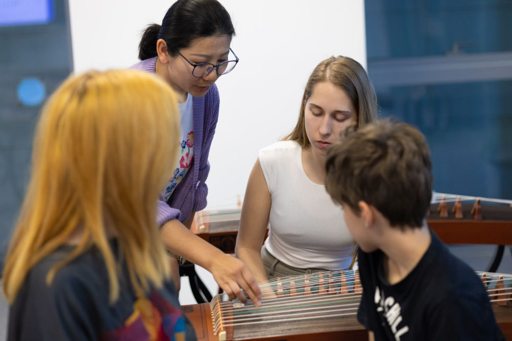 2024年4月29日,在貝爾格萊德中國(guó)文化中心,古箏指導(dǎo)老師王宣(后左)在教學(xué)。