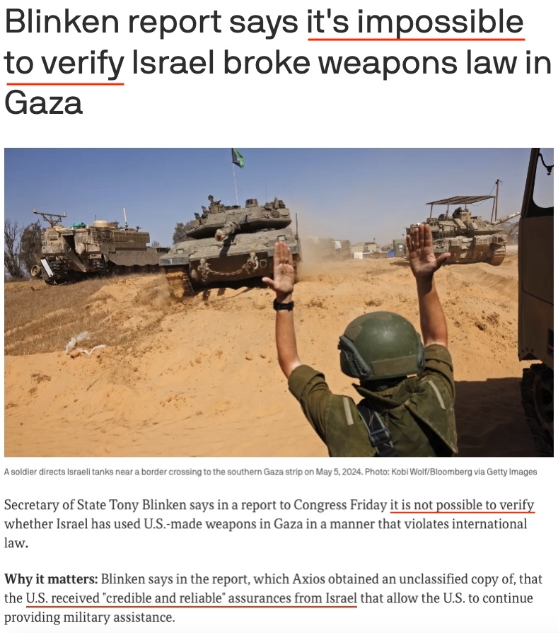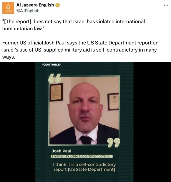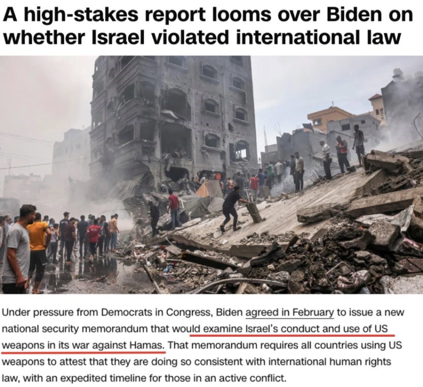 “報(bào)告中確實(shí)說,可以合理認(rèn)定以色列在違反國際人道主義法的行動中使用了美制武器,但報(bào)告卻不明確說以色列違反了國際人道主義法?!?/p>