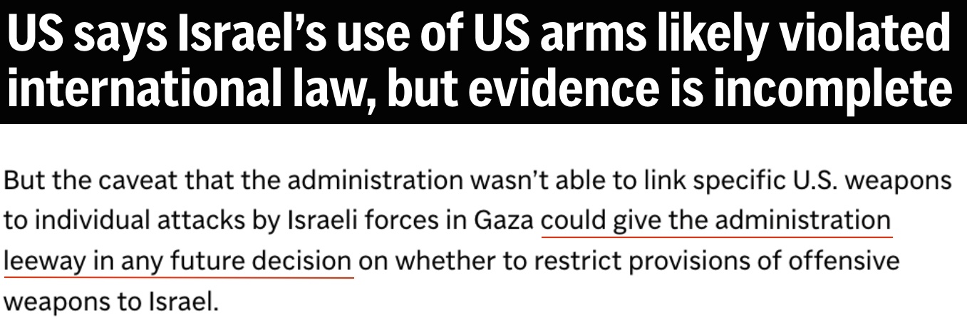 美聯(lián)社的報(bào)道直擊要害:是為今后繼續(xù)對以色列提供軍援留下余地。