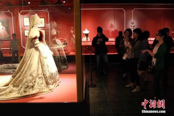 2018年5月28日,展出的匈牙利宮廷正裝吸引民眾。當(dāng)日,“茜茜公主與匈牙利——17-19世紀(jì)的匈牙利貴族生活”展覽于西安的陜西歷史博物館開(kāi)展,這是陜西省第一次引進(jìn)匈牙利文物展覽。中新社記者 張遠(yuǎn) 攝