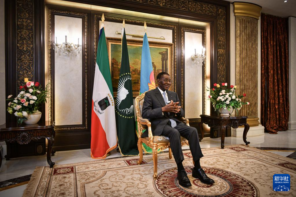 5月22日,赤道幾內(nèi)亞共和國(guó)總統(tǒng)奧比昂在首都馬拉博人民宮接受新華社記者專訪。新華社記者 韓旭 攝