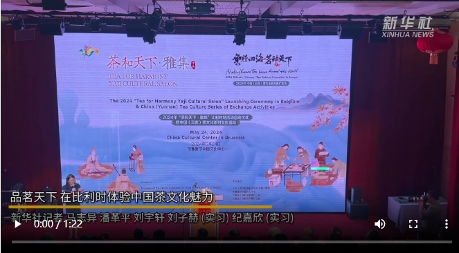 “茶和天下·雅集”云南茶文化交流活動(dòng)24日在比利時(shí)布魯塞爾中國文化中心舉辦。活動(dòng)以茶為媒,通過茶主題文藝展演、茶文化詩詞分享會(huì)、中國國家級(jí)非遺技藝展示和體驗(yàn)等多種形式,吸引比利時(shí)民眾感受中國茶文化的魅力。