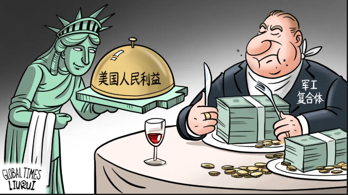 美國(guó)的軍費(fèi)花銷本質(zhì)上是政商一體、權(quán)錢合一的利益集團(tuán)對(duì)公共財(cái)富的巨大掠奪,使更多民眾陷入貧困。正如美國(guó)反戰(zhàn)人士和時(shí)政評(píng)論家吉米·多爾所說,掠奪了國(guó)家數(shù)萬億美元的軍工復(fù)合體才是美國(guó)的敵人。