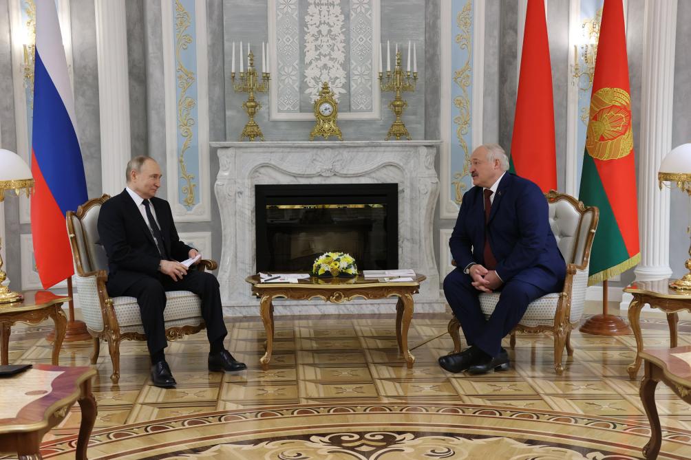 5月24日,俄羅斯總統(tǒng)普京(左)與白俄羅斯總統(tǒng)盧卡申科在白俄羅斯首都明斯克舉行會談。新華社發(fā)(白俄羅斯總統(tǒng)網(wǎng)站供圖)