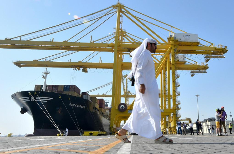 2017年6月14日,一名男子從卡塔爾首都多哈的哈馬德港口走過。新華社發(fā)(尼庫攝)
