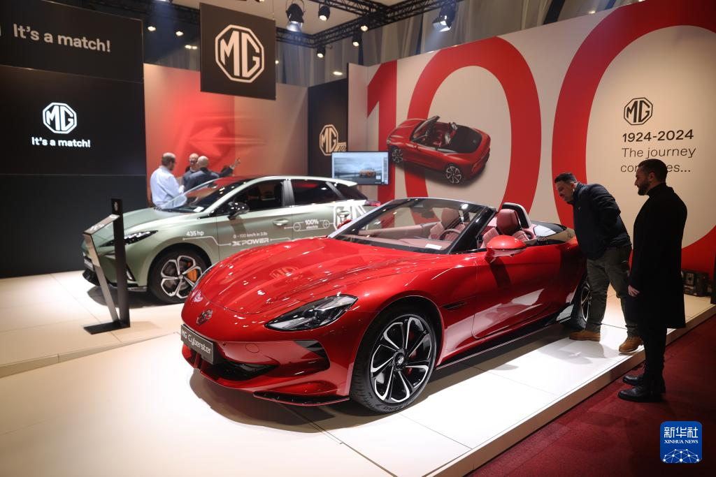 2024年1月17日,人們在比利時(shí)布魯塞爾舉辦的2024布魯塞爾汽車展上參觀上汽名爵電動汽車。新華社記者 趙丁喆 攝