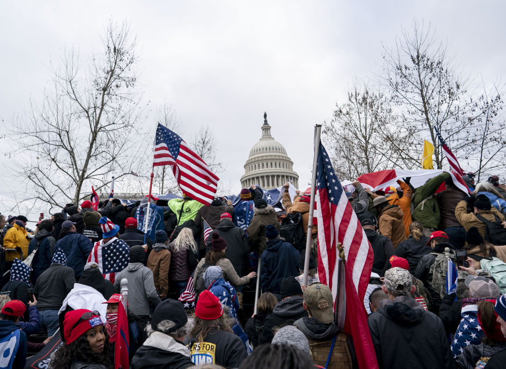 2021年1月6日,在美國首都華盛頓,時任總統(tǒng)特朗普的支持者在國會外舉行示威游行,部分示威者沖進國會大廈,與警方發(fā)生沖突,造成一人死亡,當時正在舉行的認證大選結(jié)果的國會參眾兩院聯(lián)席會議也被迫中斷。新華社記者劉杰攝