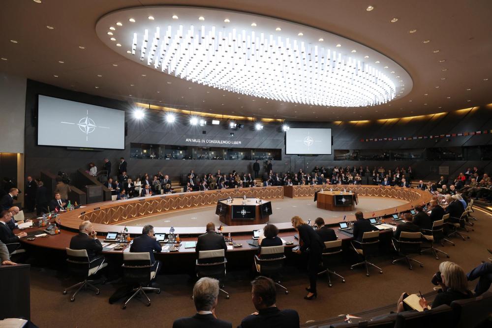 這是6月14日在比利時布魯塞爾北約總部拍攝的北約防長會現(xiàn)場。新華社記者趙丁喆攝