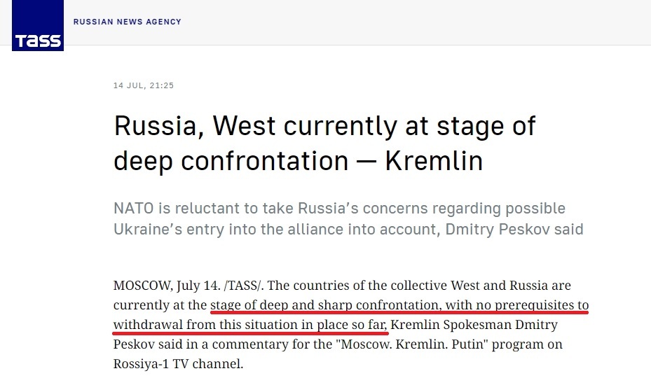 佩斯科夫警告,美國的最新舉動可能會讓歐洲“重演冷戰(zhàn)式對抗”,“歐洲正在分崩離析。對歐洲來說,這絕不是最好的時刻”。