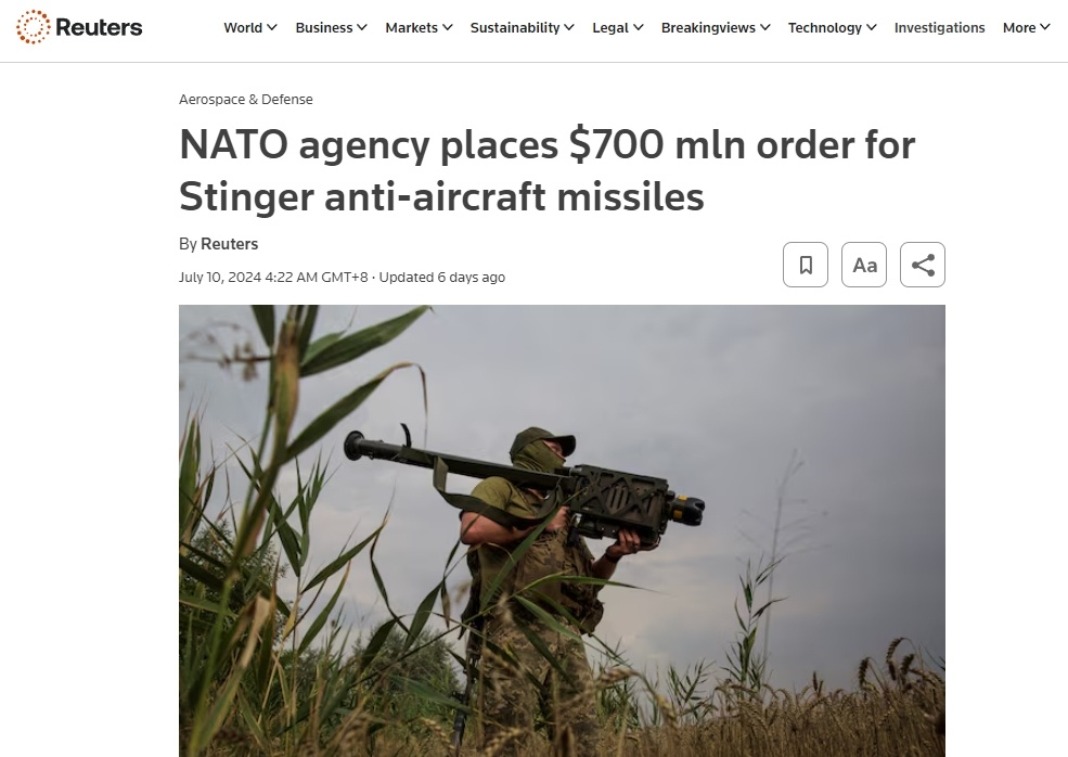 本月早些時候,北約宣布已經(jīng)以多個成員國的名義訂購了價值近7億美元的“毒刺”肩扛式單兵防空導彈。這款導彈也是雷神制造。