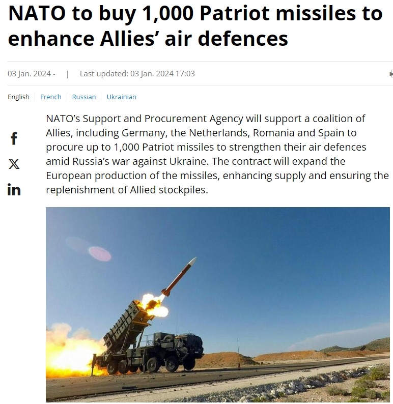 包括德國、荷蘭、羅馬尼亞和西班牙在內的北約多個歐洲成員國今年1月決定聯(lián)合采購總價值55億美元的1000枚“愛國者”導彈,以幫助加強烏克蘭軍隊的防空能力,并補充北約各援烏國家的庫存。
