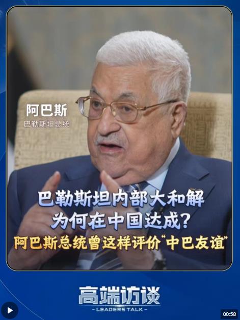 7月23日,巴勒斯坦各派在北京簽署了《關于結束分裂加強巴勒斯坦民族團結的北京宣言》。巴勒斯坦內(nèi)部大和解,為何是在中國?巴勒斯坦總統(tǒng)阿巴斯接受總臺《高端訪談》專訪時曾這樣評價中巴友誼,來聽聽他怎么說。