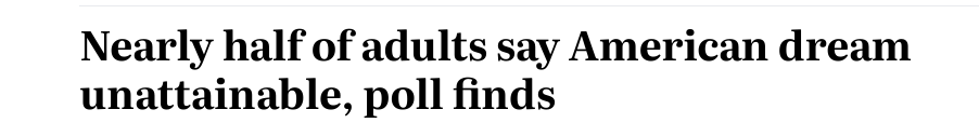 位于哥倫比亞特區(qū)的公共政策中心阿奇布里奇研究所(Archbridge Institute)在2023年7月的一份調(diào)查報(bào)告中稱,接受調(diào)查的24%的成年人表示,美國夢對他們來說“遙不可及”,這一比例高于2022年的18%。