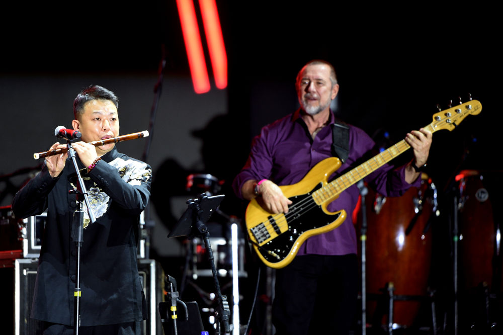 ↑8月17日,在巴西首都巴西利亞,來(lái)自中國(guó)和巴西的音樂(lè)家在沙灘藝術(shù)節(jié)中國(guó)日活動(dòng)上表演合奏。新華社發(fā)(盧西奧·塔沃拉攝)