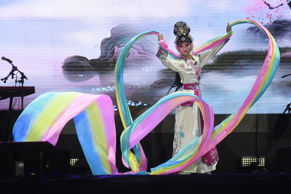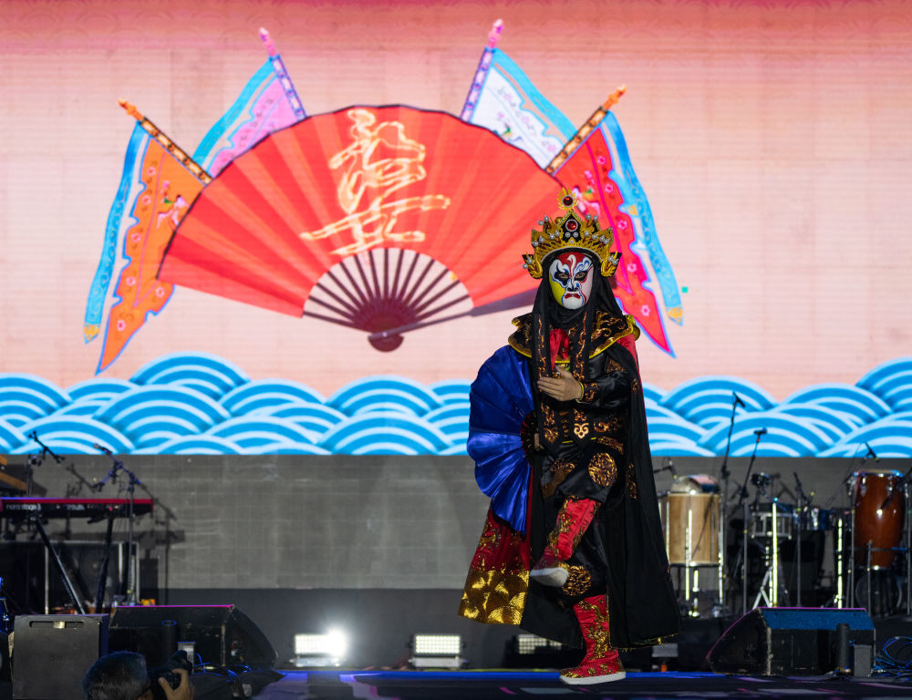 8月17日,在巴西首都巴西利亞,來(lái)自浙江婺劇藝術(shù)研究院的演員在沙灘藝術(shù)節(jié)中國(guó)日活動(dòng)上表演。