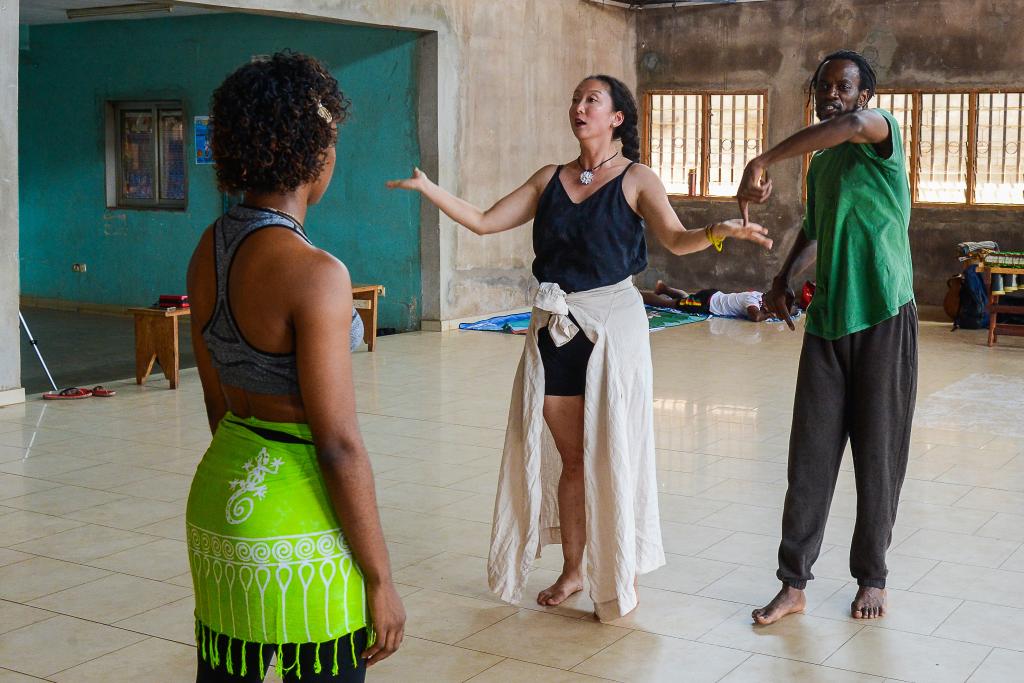 為了讓沒(méi)有任何專業(yè)基礎(chǔ)的喀麥隆學(xué)生們理解現(xiàn)代舞,娜爾斯和蔣可鈺還想到用中國(guó)太極和源于印度的瑜伽,向?qū)W員們講解太極圓弧運(yùn)動(dòng)和道家哲學(xué)思想,讓學(xué)生們領(lǐng)會(huì)中國(guó)太極和東方文化的思想內(nèi)涵,催化了中非古老文化的融合。