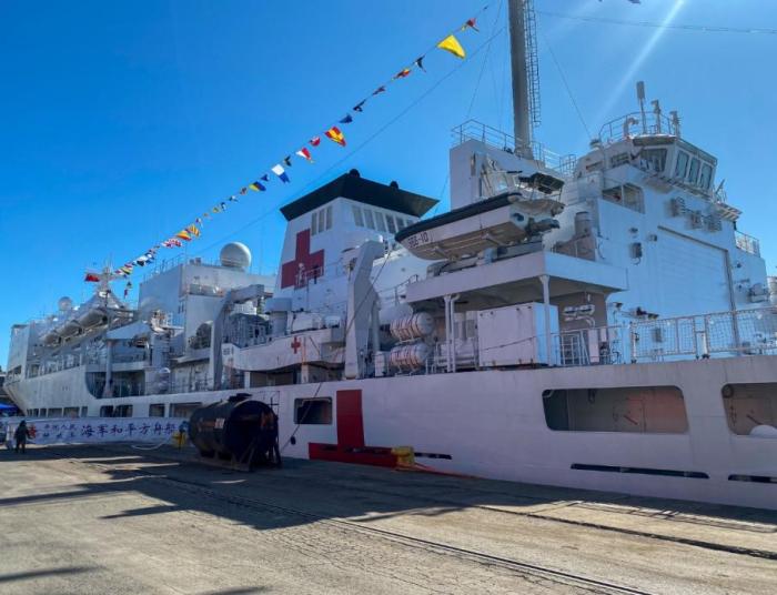 中國(guó)“和平方舟”號(hào)醫(yī)院船。圖片來(lái)源:南非國(guó)防軍社交媒體截圖