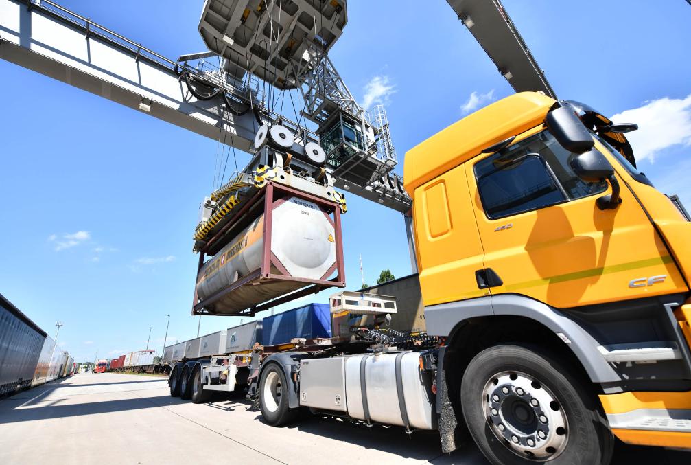 5月27日,龍門吊在德國漢堡-比爾韋爾德DUSS貨運場站作業(yè)。德國漢堡是中歐班列在歐洲的重要站點。新華社記者任鵬飛攝