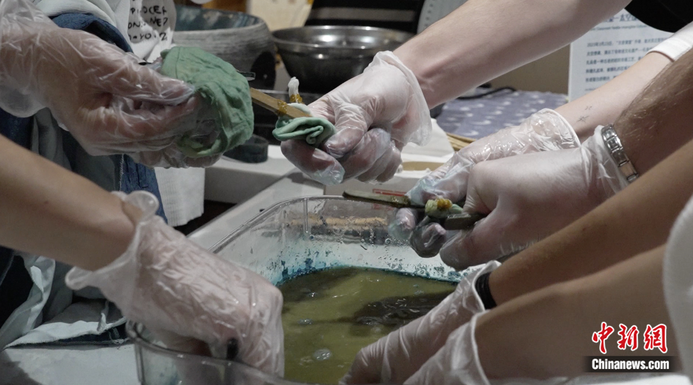 “洋弟子”體驗(yàn)高陽草木染。 張子怡 攝