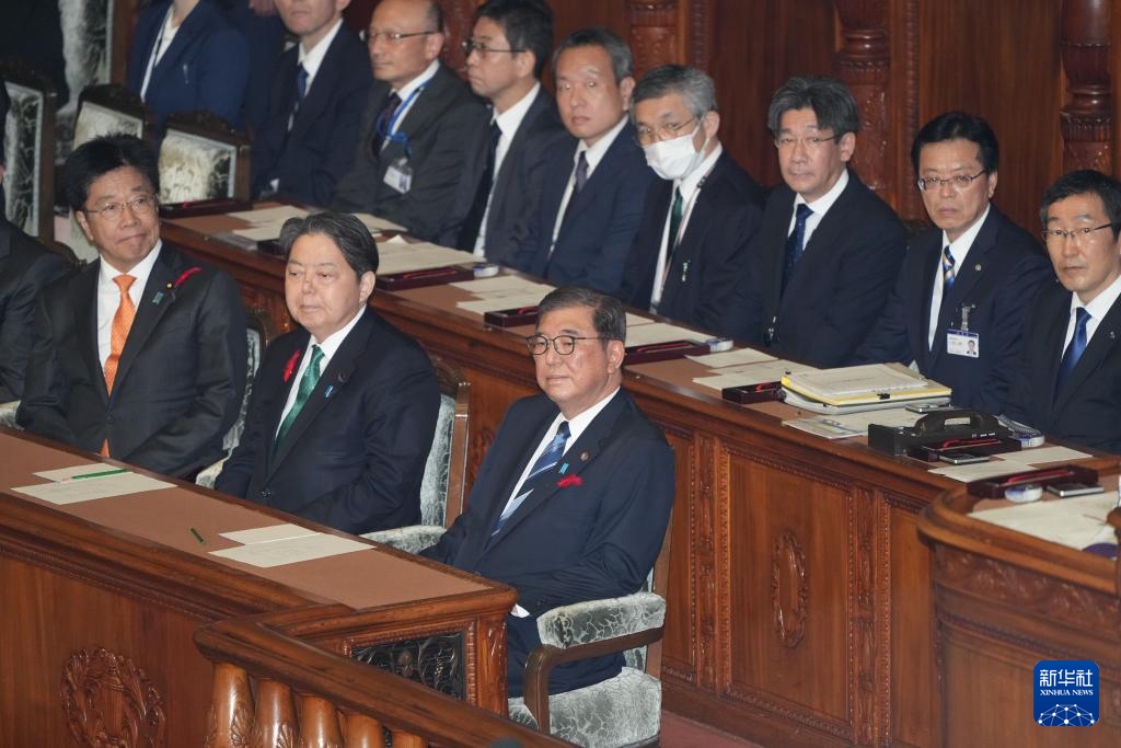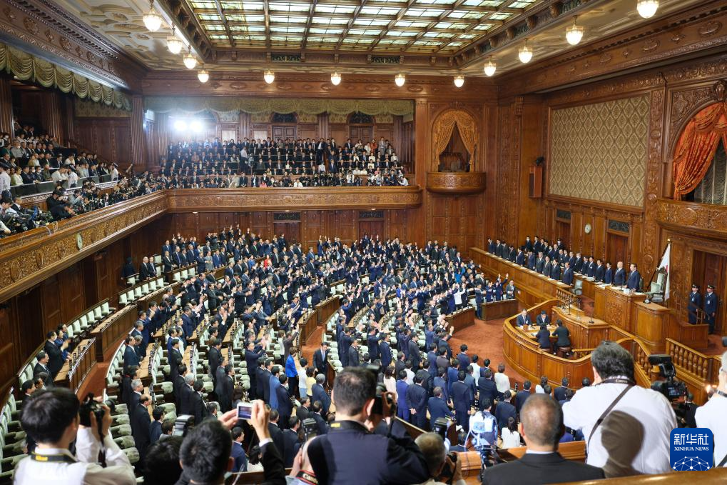10月9日,日本首相石破茂(前排右)出席在首都東京舉行的眾議院全體會(huì)議。新華社記者 張笑宇 攝