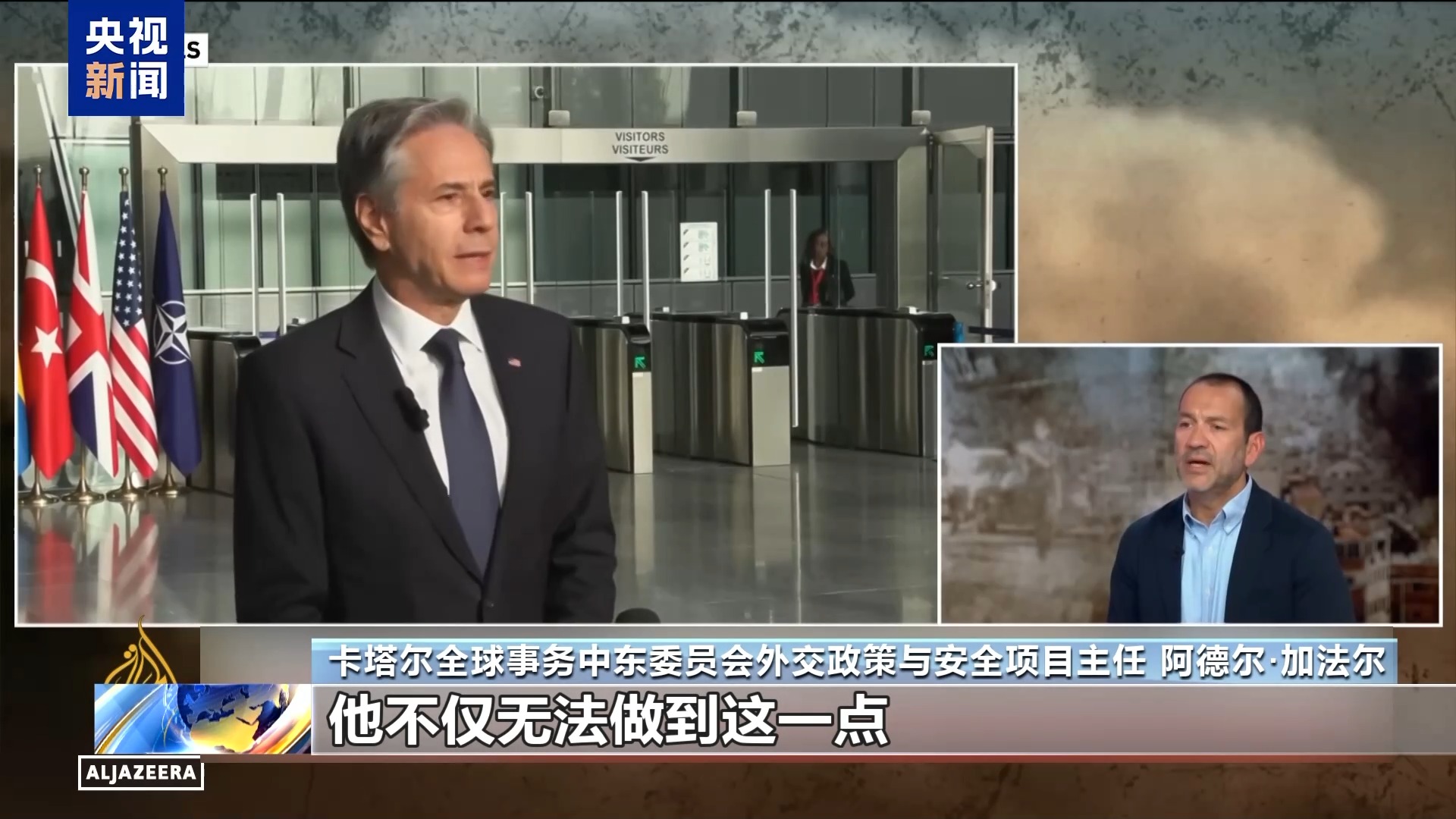卡塔爾全球事務(wù)中東委員會(huì)外交政策與安全項(xiàng)目主任 阿德爾·加法爾:過去一年多布林肯已經(jīng)去了中東至少11次,和中東國家領(lǐng)導(dǎo)人會(huì)面,他試圖推動(dòng)以色列結(jié)束戰(zhàn)爭,但到目前為止,他不僅無法做到這一點(diǎn),而且美國還在外交政策上偏袒以色列,不斷提供武器和資金支持。