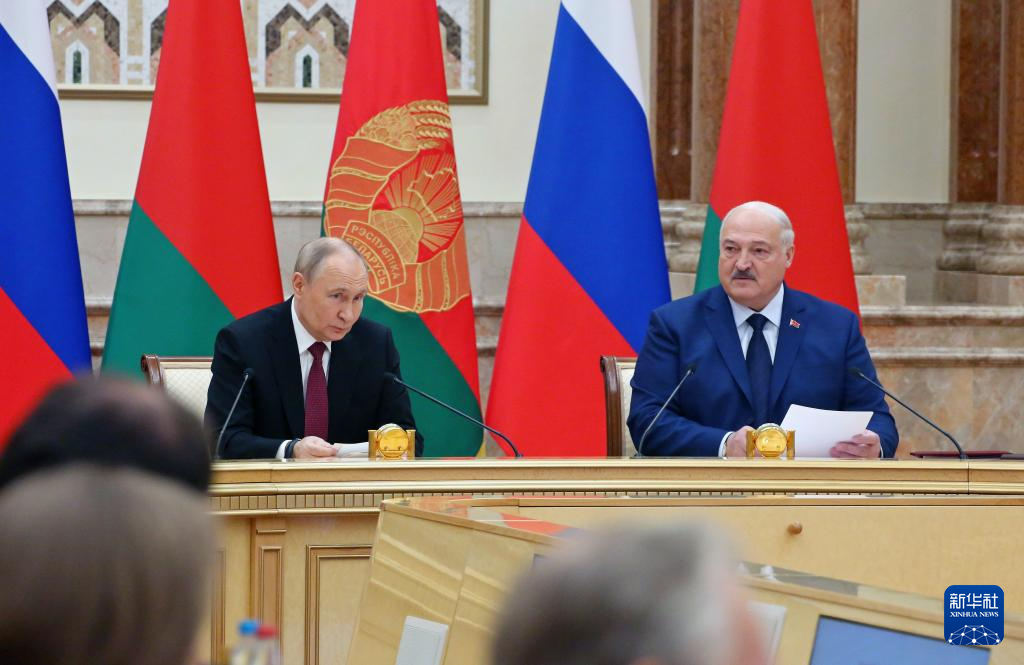 12月6日,在白俄羅斯明斯克,俄羅斯總統(tǒng)普京(后左)和白俄羅斯總統(tǒng)盧卡申科(后右)出席俄羅斯和白俄羅斯聯(lián)盟國家最高國務委員會會議。新華社發(fā)(任科夫攝)