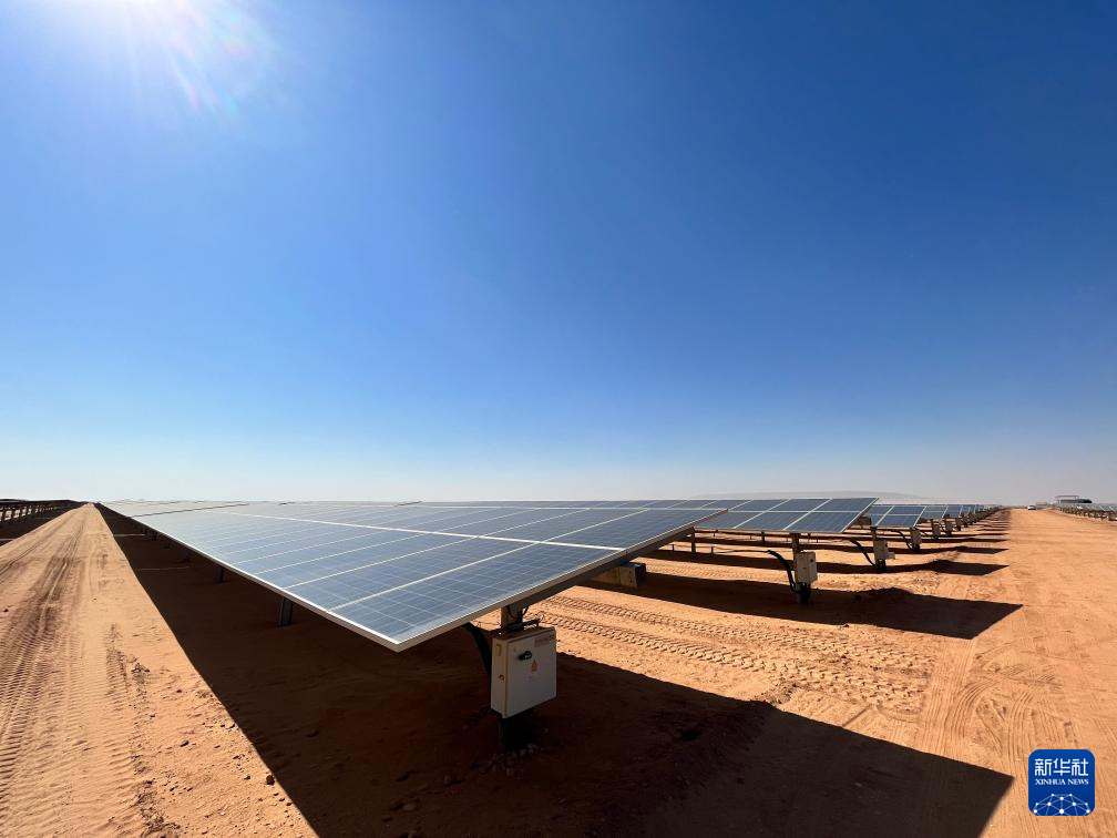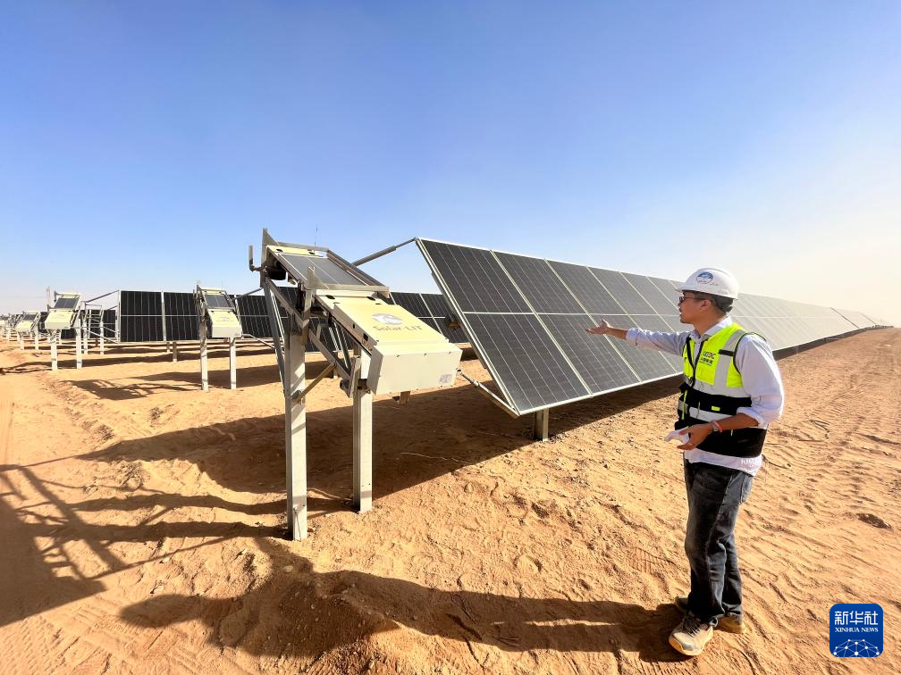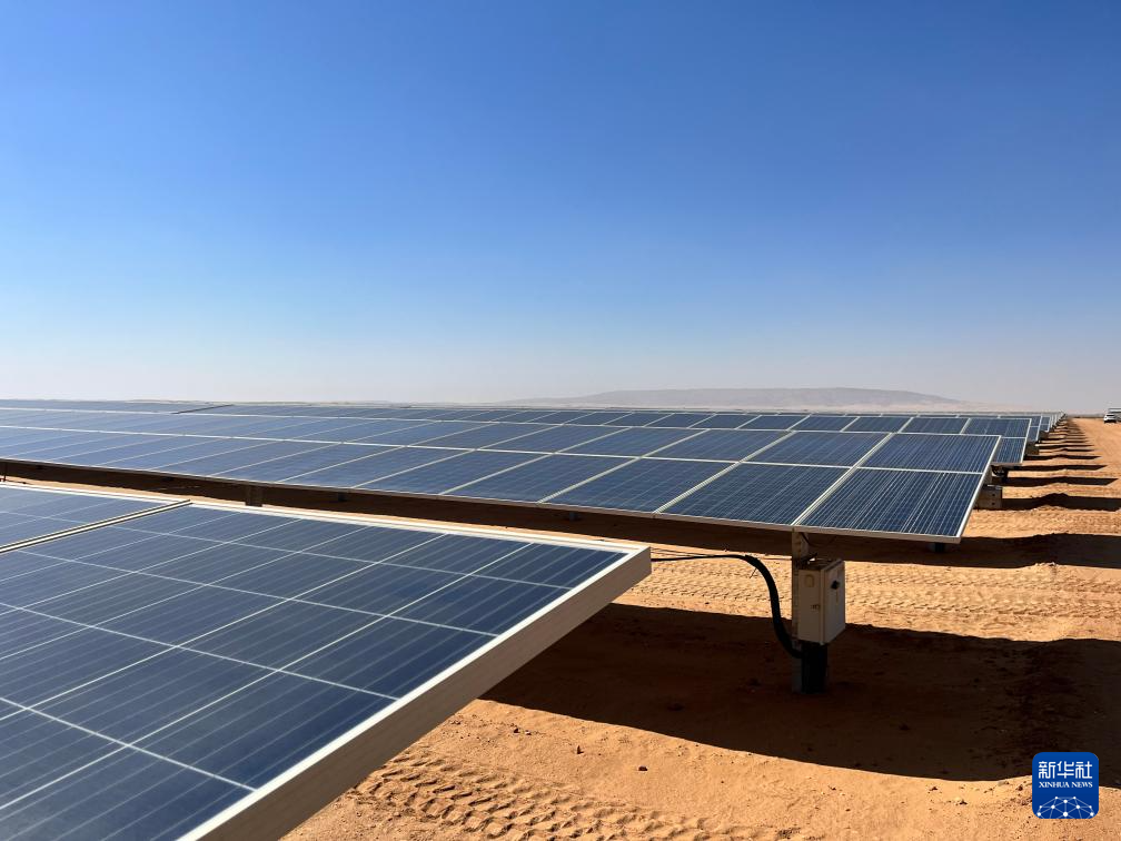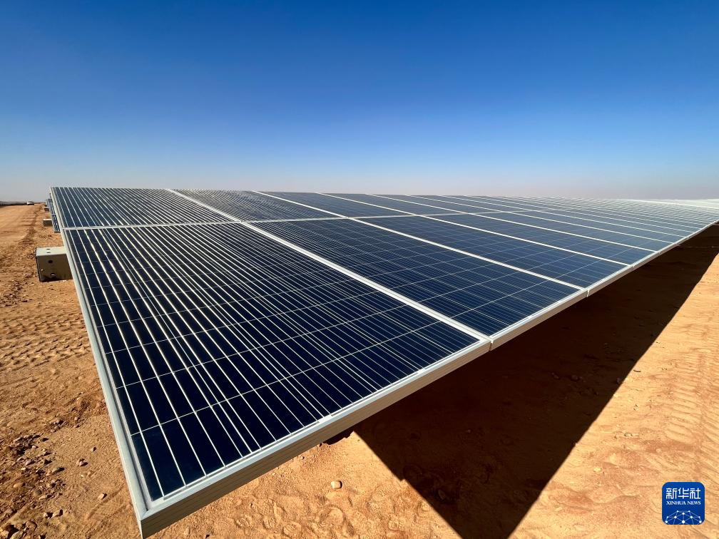 充沛的光照讓埃及具備得天獨厚的光伏發(fā)電條件。本班光伏產(chǎn)業(yè)園占地面積37平方公里,規(guī)劃建設(shè)40座太陽能發(fā)電廠,總裝機容量約2千兆瓦,目前已有32座發(fā)電廠建成并投入運營。廣袤的撒哈拉沙漠中,高高架起的光伏板像棋盤格一樣鋪展開,從高處俯瞰猶如藍色海洋。光伏板跟隨太陽的位置調(diào)整角度,炙熱的陽光被源源不斷轉(zhuǎn)化為電力能源。