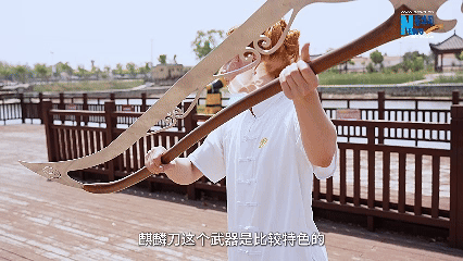 麒麟刀是傳統(tǒng)器械的一種,屬于長兵器,全套動作以劈、砍、斬、撩、掛、挑、勻、掃為主。在可欣的眼中,麒麟刀很大也很重,但動作有氣勢,在習(xí)練過程中體會到了中華傳統(tǒng)武術(shù)的精神和魅力。