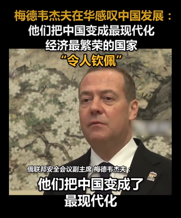 梅德韋杰夫在華感嘆中國發(fā)展:他們把中國變成最現(xiàn)代化、經(jīng)濟(jì)最繁榮的國家