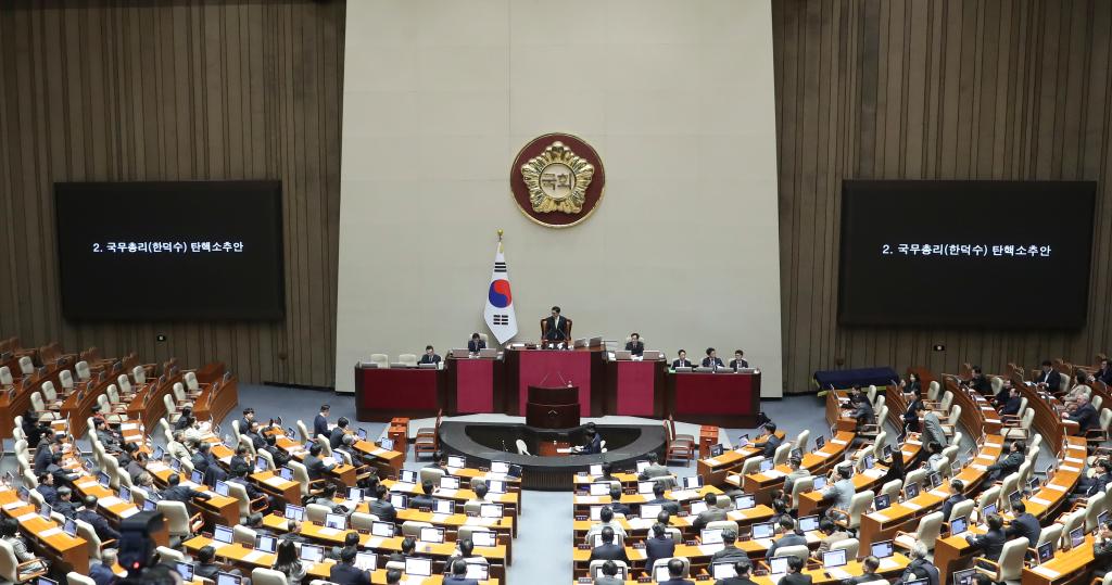 在韓國總統(tǒng)尹錫悅遭國會彈劾、國務總理韓德洙代行總統(tǒng)職權(quán)僅13天后,韓國國會27日下午以192票贊成通過針對韓德洙的彈劾動議案。