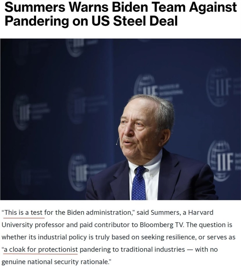 早在去年收購案推進過程中,美國前財政部長勞倫斯·薩默斯就曾表態(tài)認為,日鐵收購美鋼并不會構(gòu)成“國家安全風(fēng)險”。