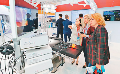 觀眾在白俄羅斯中白工業(yè)園舉行的2024中國醫(yī)學(xué)裝備(白俄羅斯)展覽會上參觀。 任科夫攝(新華社發(fā))
