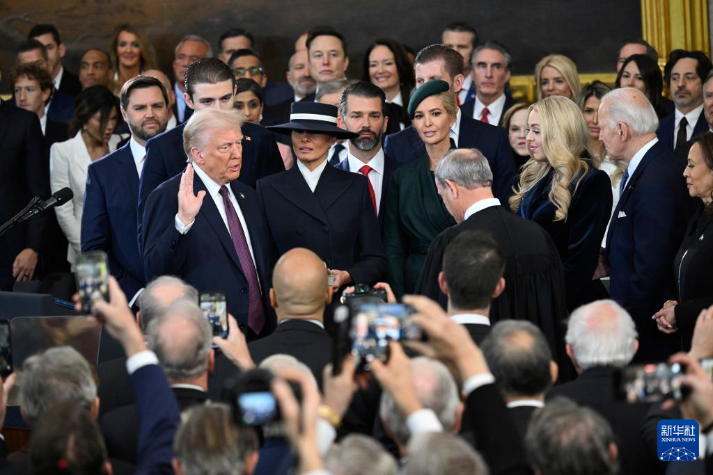 美國東部時間20日中午,特朗普在國會大廈圓形大廳宣誓就任美國第47任總統(tǒng)。