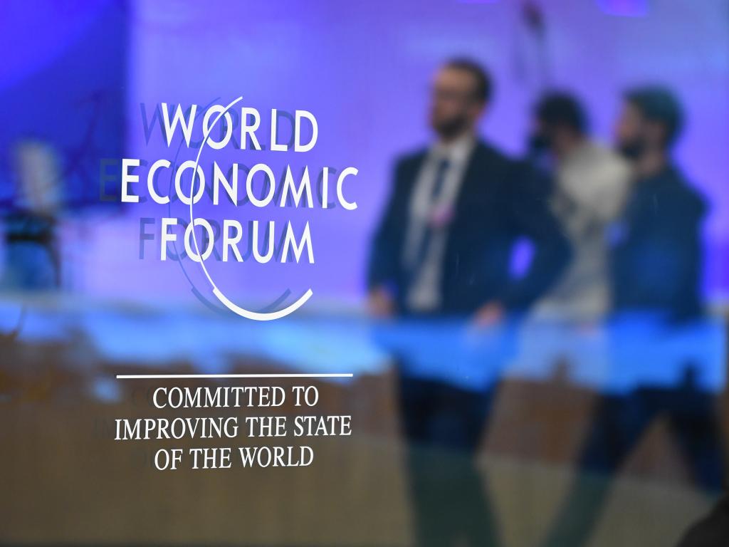 1月21日,在瑞士達沃斯,與會者參加世界經(jīng)濟論壇2025年年會。新華社記者連漪攝