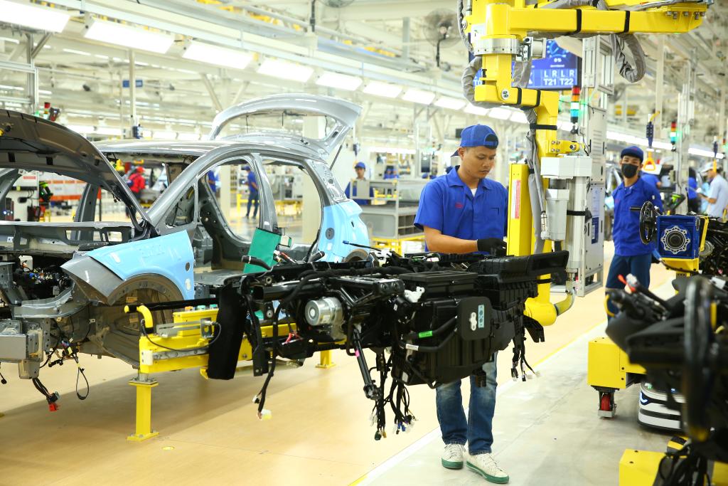 2024年7月4日,工人在位于泰國羅勇府的比亞迪泰國工廠工作。新華社記者孫瑋彤?dāng)z