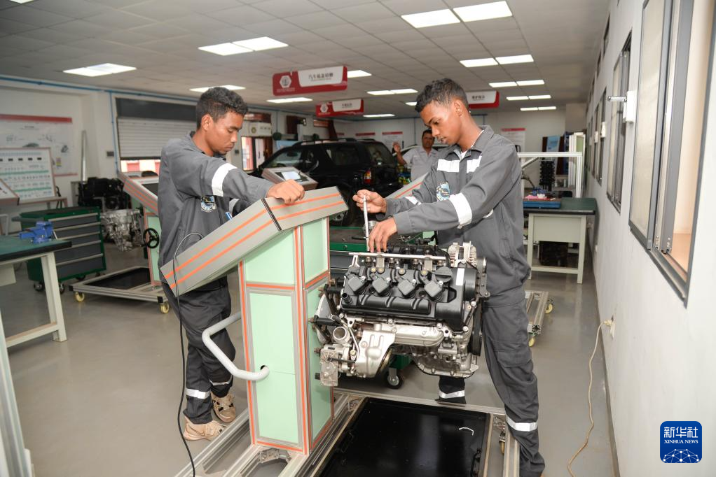 2月10日,在馬達加斯加首都塔那那利佛的魯班工坊,汽車工程專業(yè)學生進行教學實踐。新華社發(fā)(西塔卡·拉喬納里松攝)