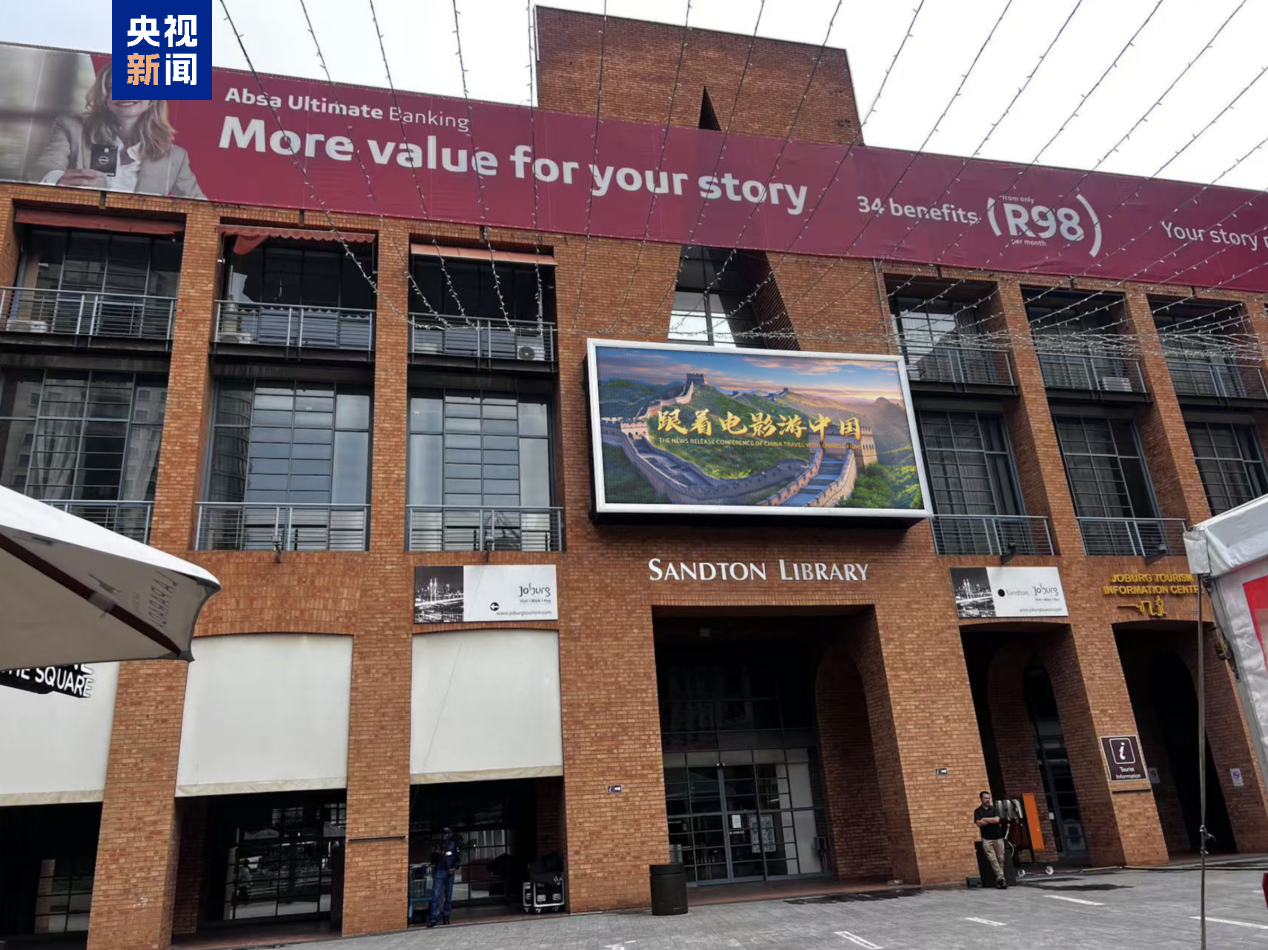 △總臺(tái)“跟著電影游中國(guó)”活動(dòng)走進(jìn)南非地標(biāo)建筑曼德拉廣場(chǎng)