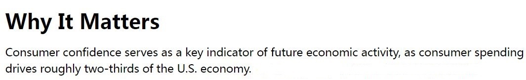 CCI既反映美國人對當前經(jīng)濟狀況的評估,也反映他們對未來六個月的展望,是預測美國未來經(jīng)濟前景的關鍵指標。