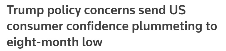 各家媒體紛紛用“暴跌”“直線下降”“急劇惡化”等詞匯來形容美國消費者信心的顯著下滑。