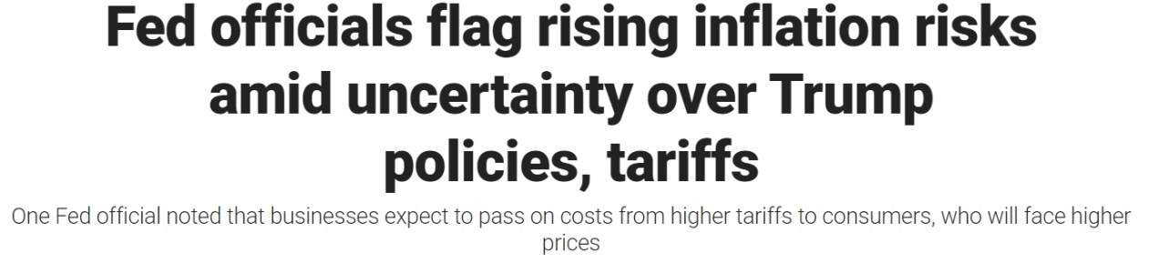 美聯(lián)儲日前公布的1月貨幣政策會議紀要顯示,因擔心特朗普政府的關稅政策可能成為推高通脹的一大因素,美聯(lián)儲官員一致同意維持現(xiàn)有利率不變。