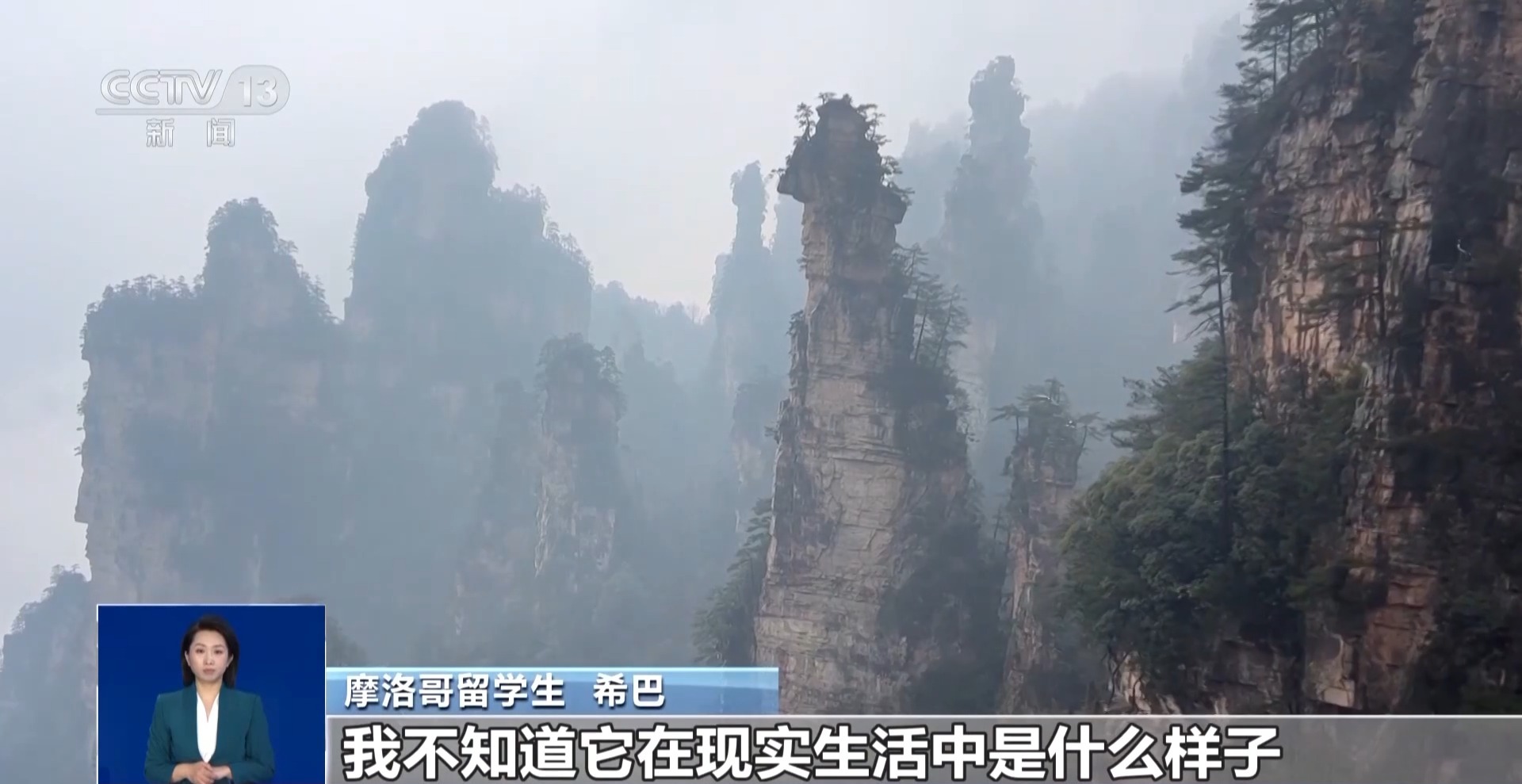 摩洛哥留學(xué)生 希巴:看完電影后我想去張家界,我不知道它在現(xiàn)實(shí)生活中是什么樣子,但它看起來(lái)就像天堂,整個(gè)水域,山脈,一切都非常棒,美麗。