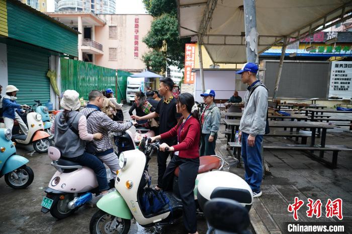 3月16日,云南省紅河州河口縣街頭,數(shù)位越南游客騎著租來的電動(dòng)車游玩。中新社記者 劉冉陽(yáng) 攝