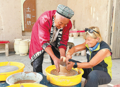 維娜·卡瑪洛塔在新疆體驗(yàn)制陶工藝?! ≈煸HA攝