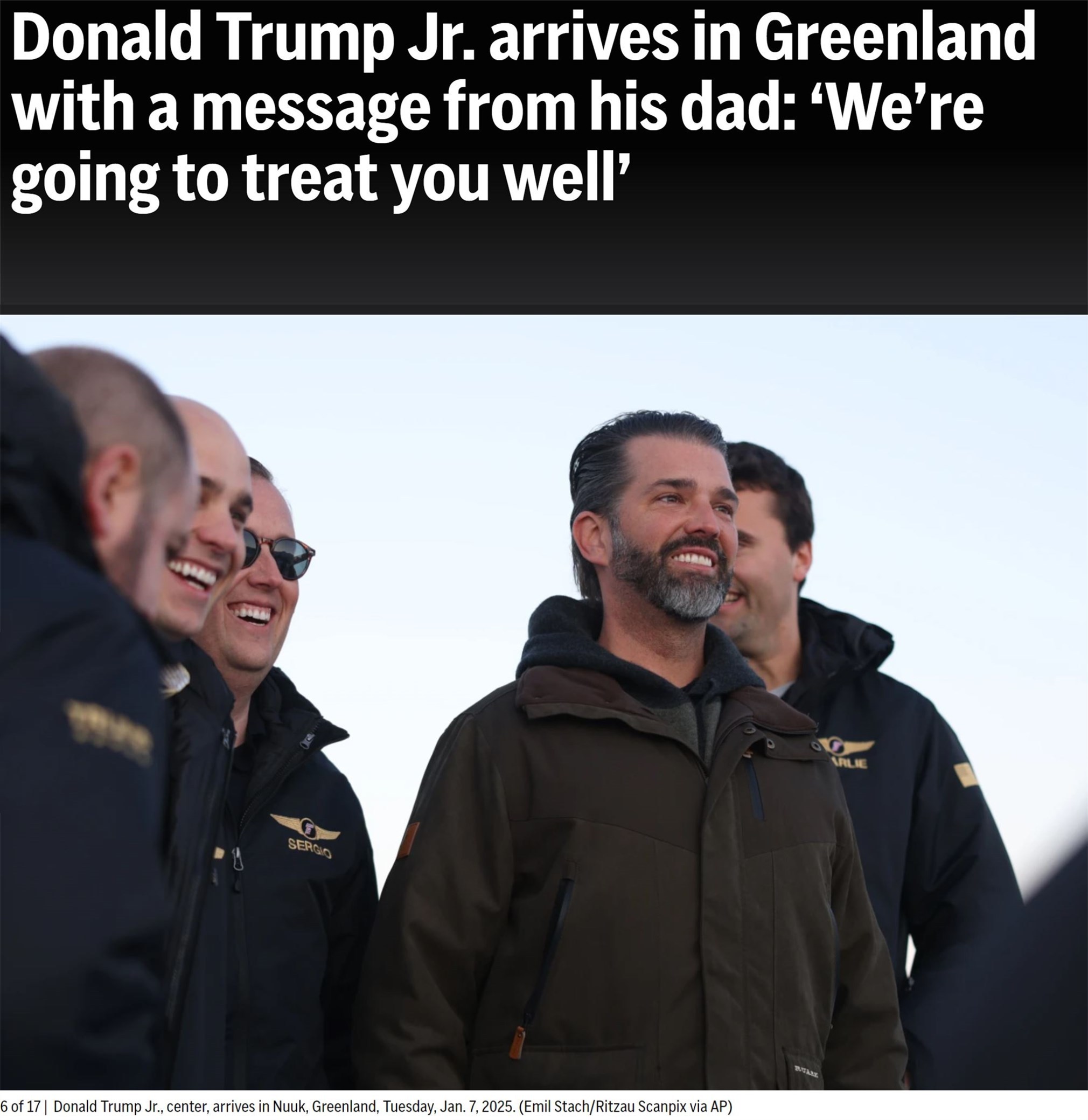 為了讓“奪島”計劃早日成真,除了美國代表團不請自來的訪問計劃,特朗普長子小唐納德·特朗普早在年初就已經(jīng)借私人旅游的名頭去島上“打前站”。