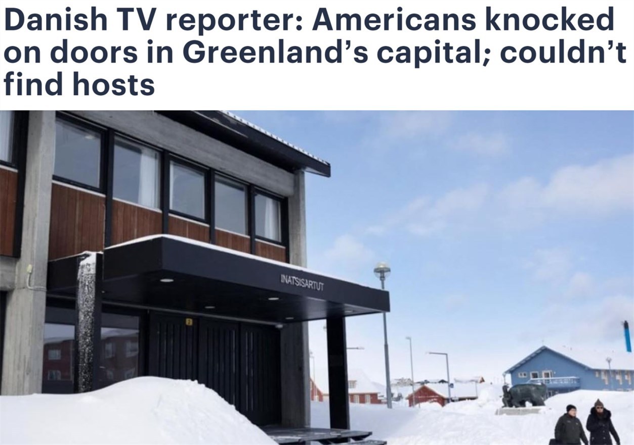 據(jù)丹麥電視二臺記者賈斯珀·斯坦梅茨在節(jié)目中披露,萬斯率領的代表團出發(fā)之前,美國政府已秘密派人到格陵蘭島相關地區(qū)“做工作”,希望當?shù)孛癖姎g迎萬斯一行,但卻碰了一鼻子灰。