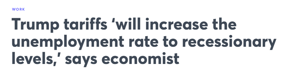 【世界說】美經(jīng)濟學(xué)家:關(guān)稅政策將致美國失業(yè)率飆升至經(jīng)濟衰退水平 就業(yè)市場或迎寒冬
