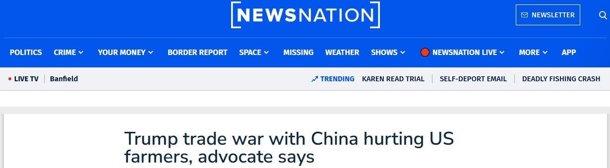 △美國媒體援引美國農(nóng)民工會(huì)主席的評論:特朗普發(fā)起對中國的貿(mào)易戰(zhàn)傷害了美國農(nóng)民
