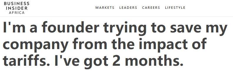 △商業(yè)內(nèi)幕網(wǎng)站刊載馬修·哈塞特的自述:《我是一名試圖在關(guān)稅壓力下挽救公司的小企業(yè)主,我還有兩個(gè)月的時(shí)間》